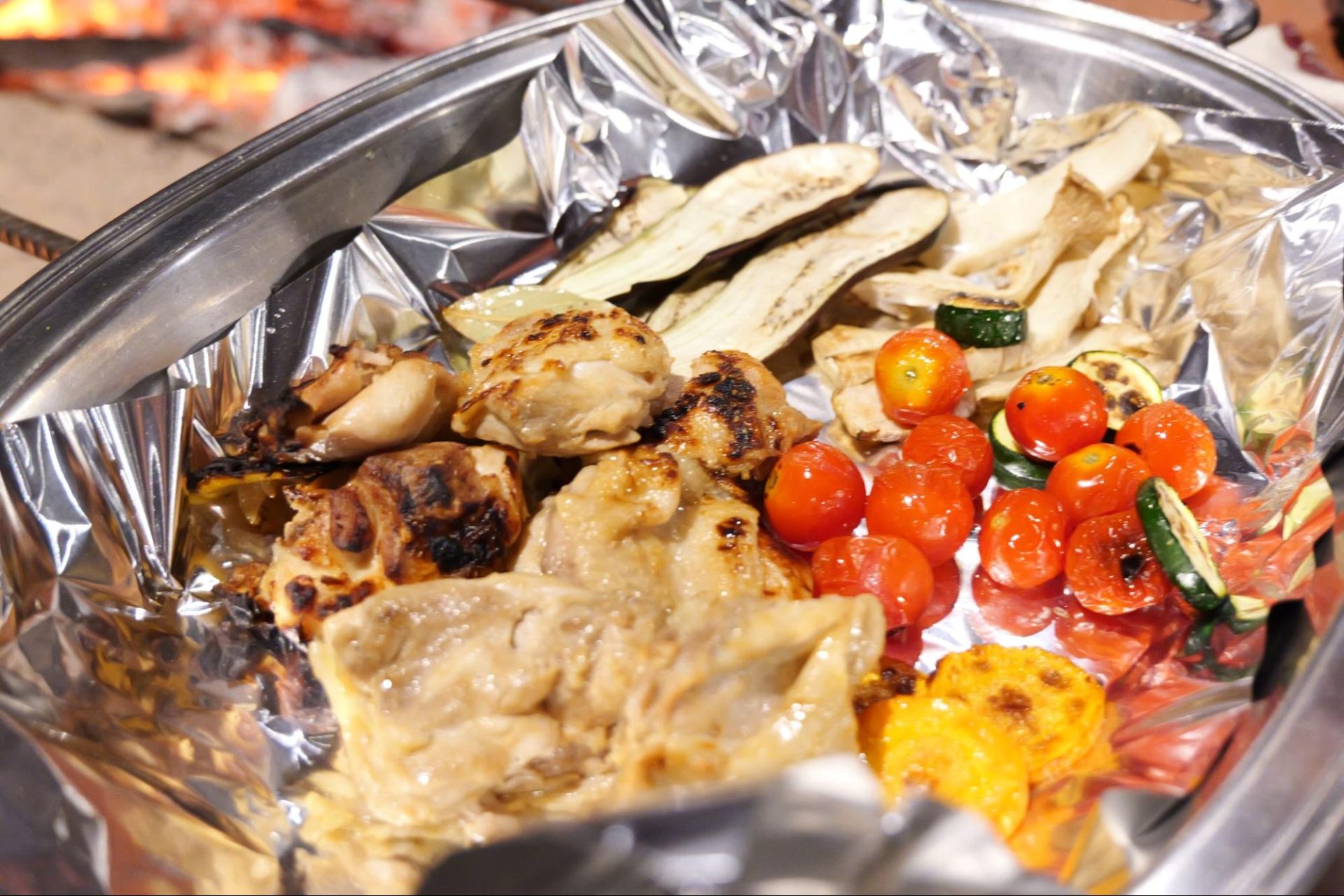 今夜のメニューはカレー。焚火を囲んで、いただきます。
