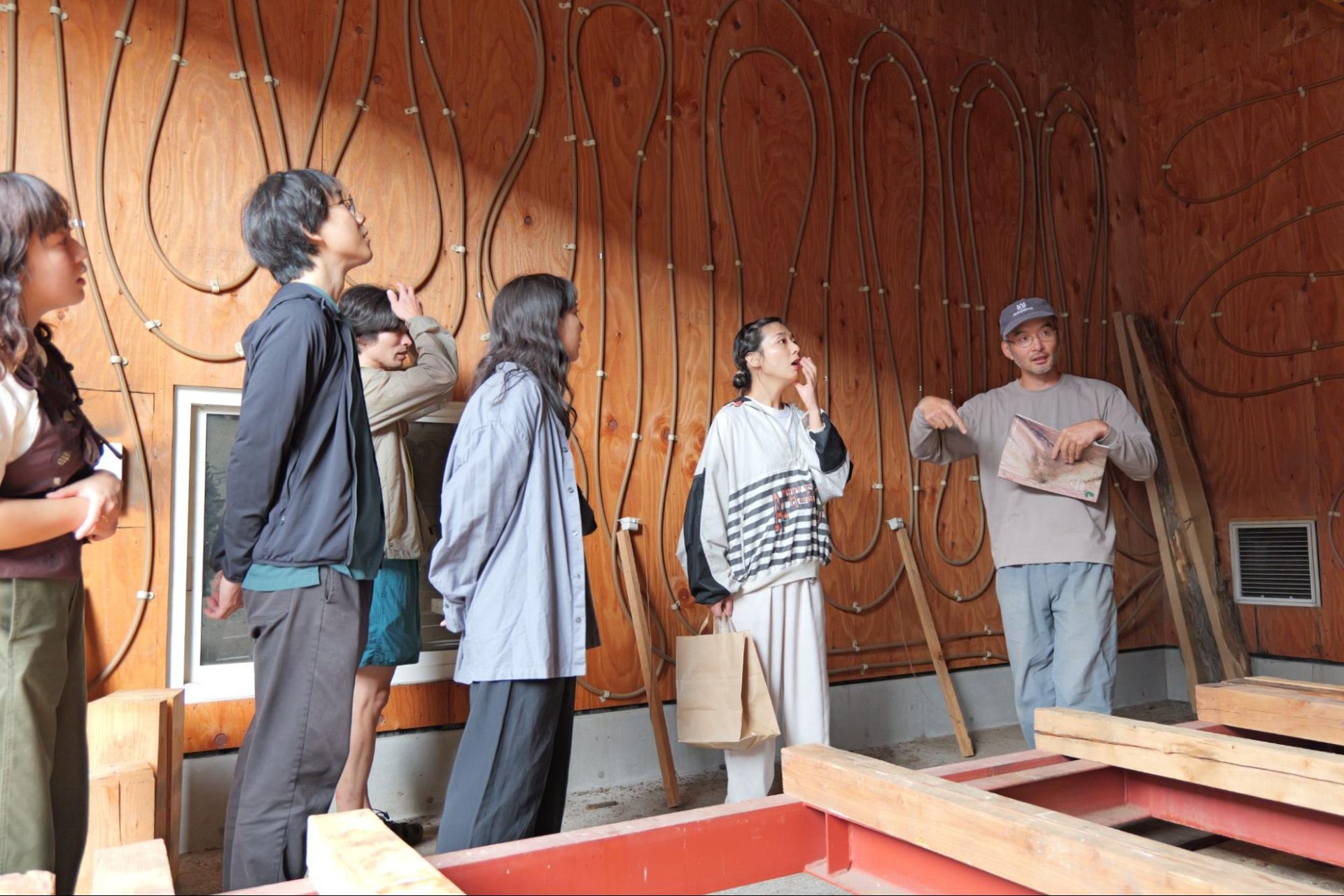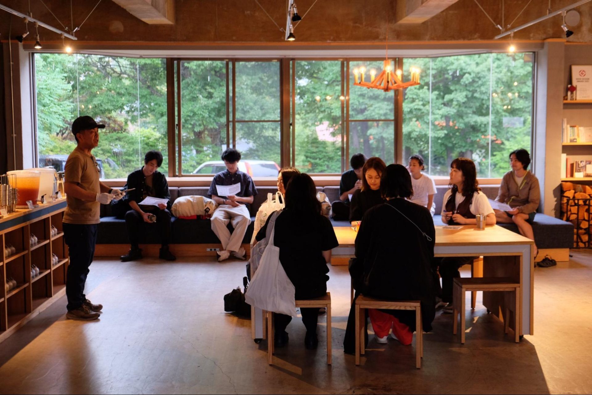 参加者は12名。今回の合宿をリードしてくれたのは、2024年新卒入社の若手社員。家具・建築空間の設計・製作ディレクションを担う森をチームの鈴鹿と二方です。