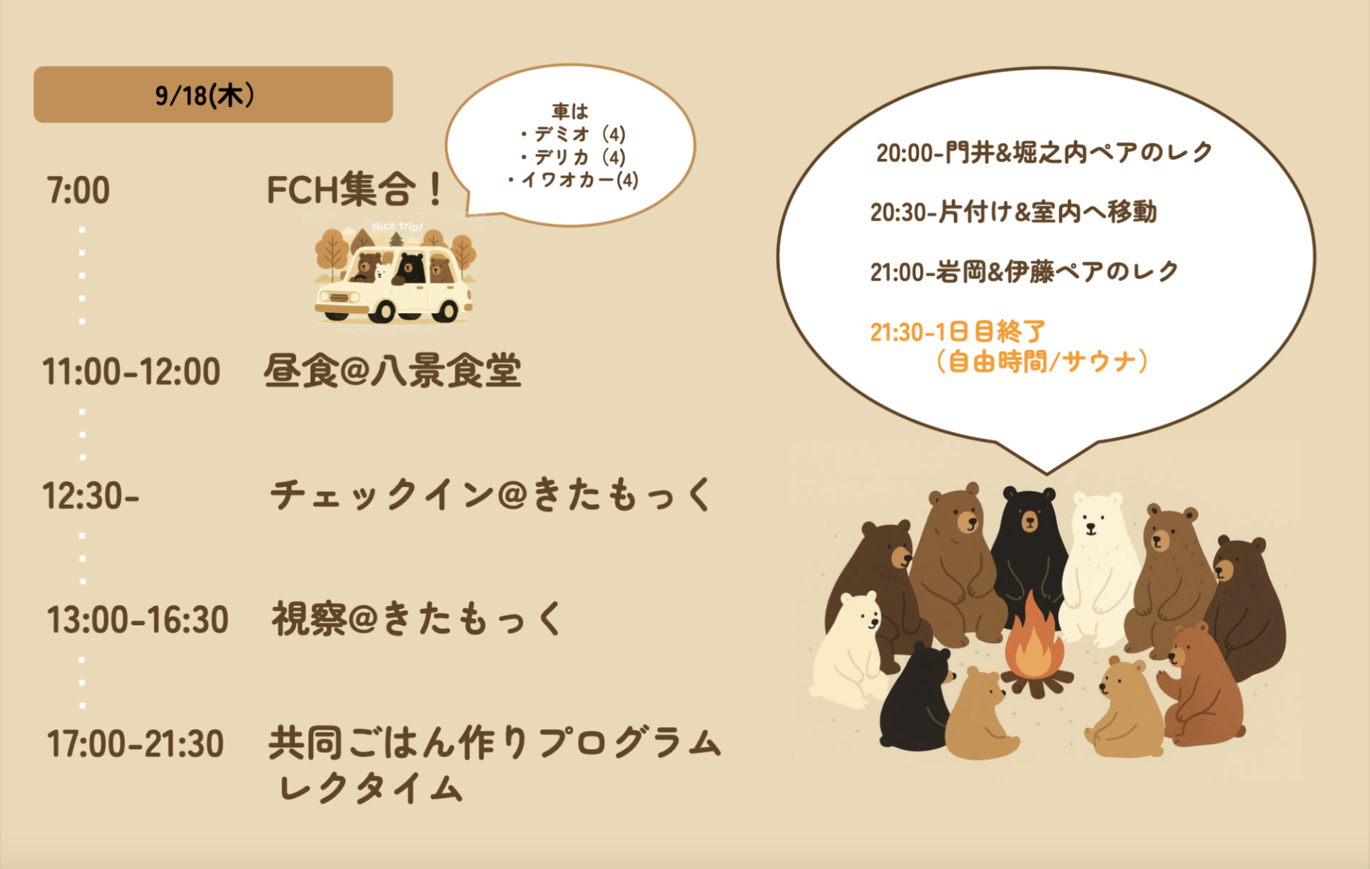 そうした時間そのものが、個人の成長だけでなく、ヒダクマとしての考え方を育んだり、共有していくことにもつながっていると感じた合宿でした。