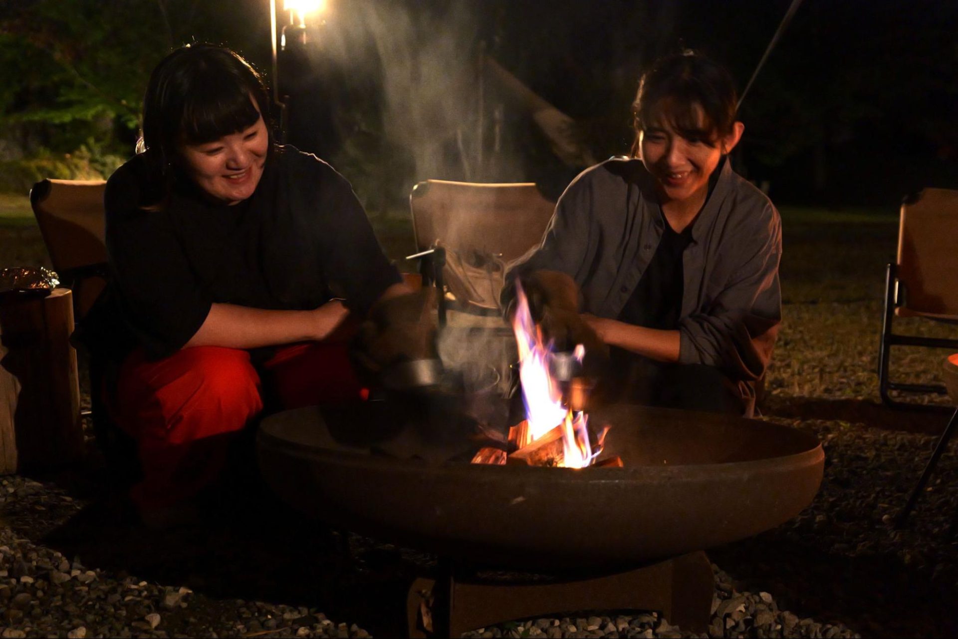 焚火を見つめながら、きたもっくの「焚火哲学」を感じ、心がゆっくりとほどけていきます。