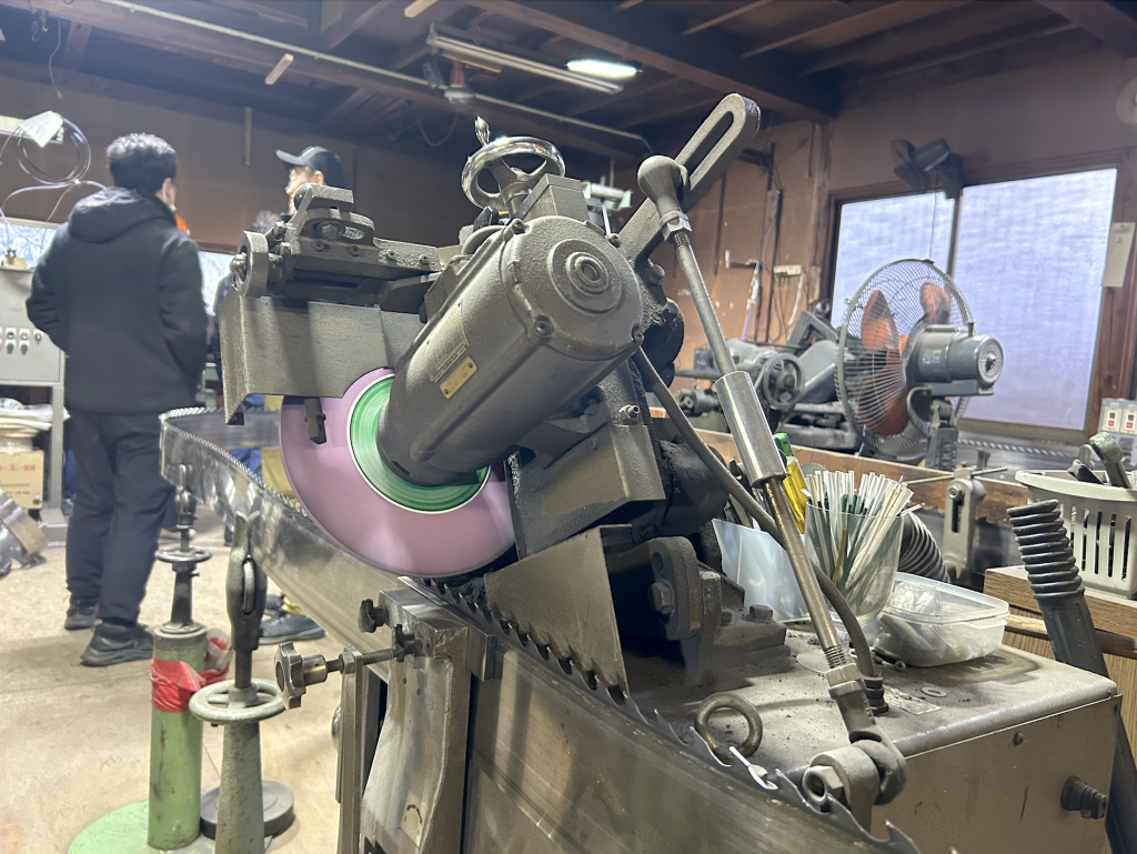 今回の見学場所のメインとなる宇野鋸加工所では、宇野さんから目立の仕事についてお話を伺い、跡継ぎとして修業中の息子・宇野雅俊さんも参加してくださいました。参加者にとって目立技術の奥深さだけでなく、その継承の難しさにも触れる時間となりました。