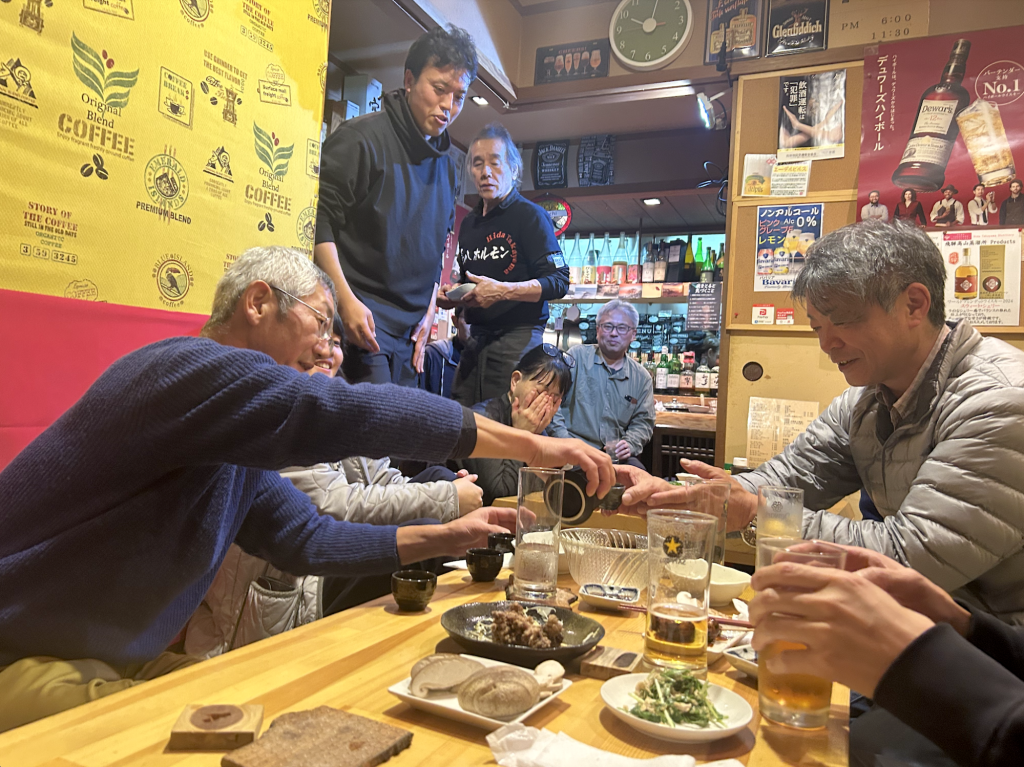 夜は、宇野さんが経営する飛騨古川駅近くのホルモン居酒屋「居酒屋長八」にて懇親会を開催しました。