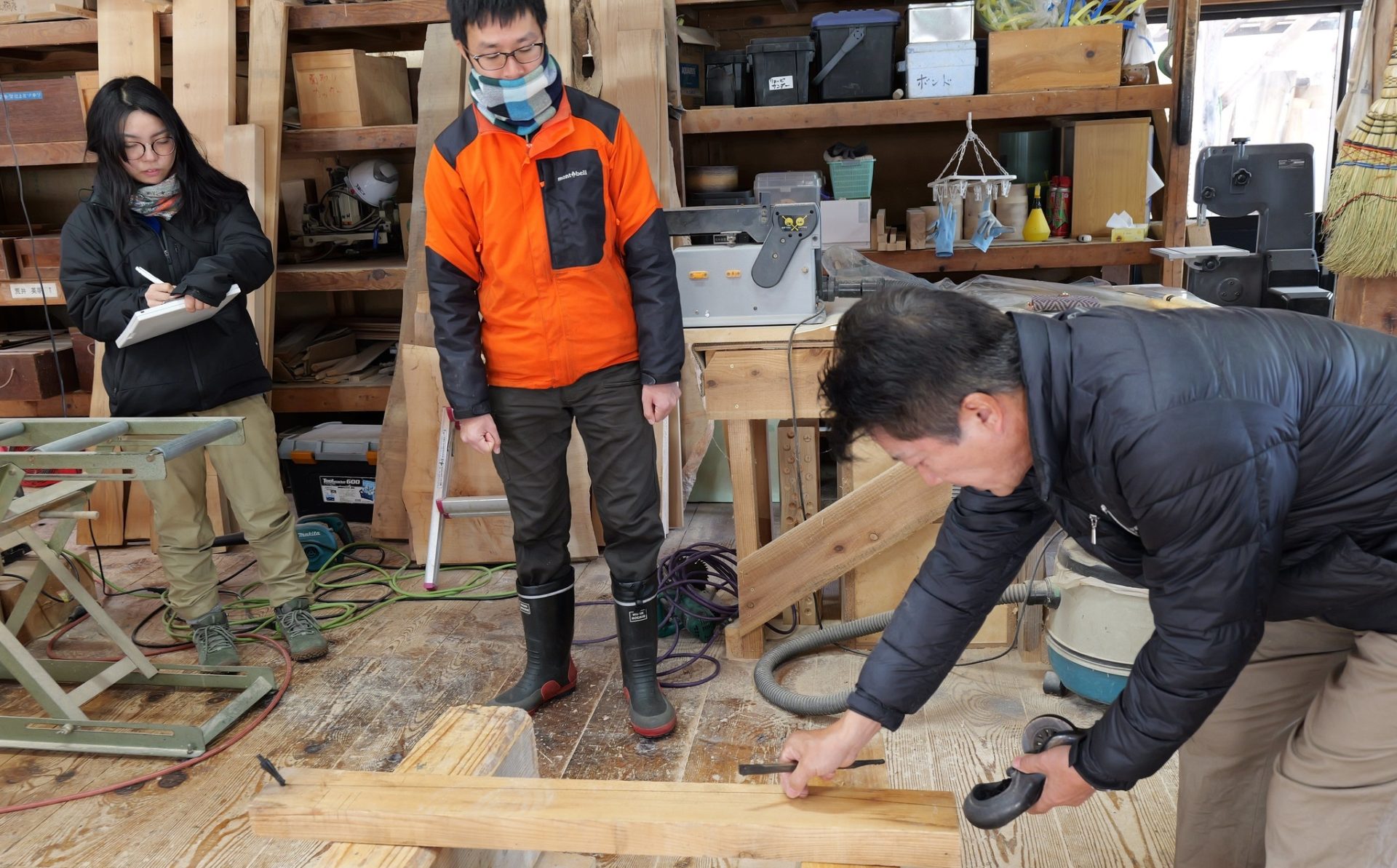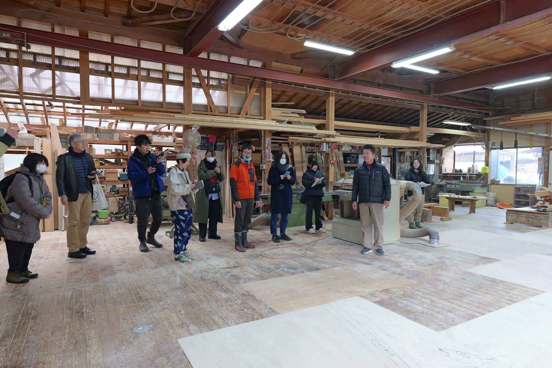床暖房が完備され、冬でも日中は半袖で作業することもあるそうで、大工の仕事のイメージが大きく変わる見学となりました。