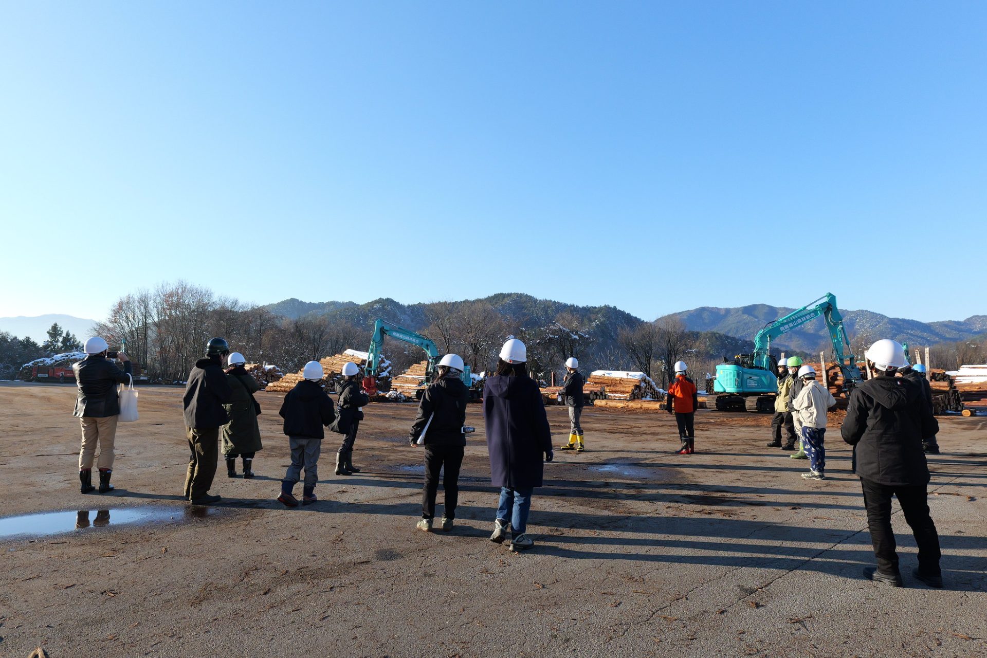 木の里団地に戻り、森林組合の建物横に広がる土場へ。