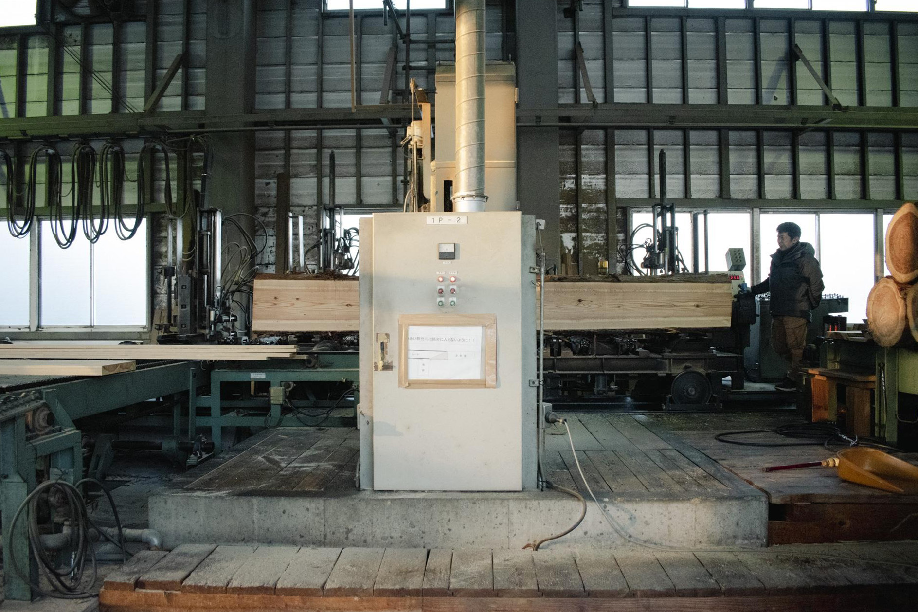 創業当初は広葉樹を挽いていたが、現在は針葉樹が中心とのこと。中畑さんは建築を学んだ経験から「製材は完成形が見えにくい仕事」と感じてきましたが、現場に足を運ぶことで図面や仕上がりを理解し、「木が活きる挽き方」を提案できる製材へと10年かけて変えてきました。