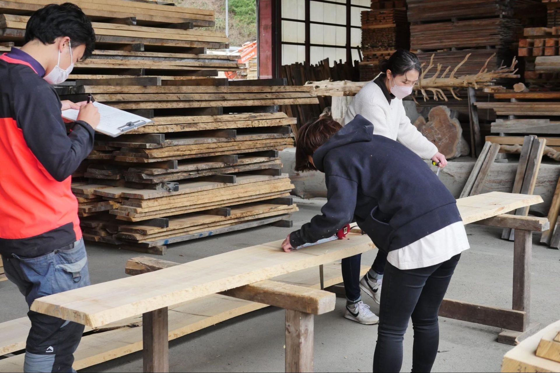 「手間さえかければ、という言い方はあれですけれど、 広葉樹でできないことはない。ただ、それを言い始めるときりがない。なので本当に少しのこと、時間とコストが1割アップするくらいで広葉樹を活かすチャレンジができるなら、板を一枚一枚ひっくり返して、腕がパンパンになる1日があってもいいんじゃないか、森に入ってどの木をどう使うか考える時間があってもいいんじゃないかなって。手間暇は楽しいよね。ちゃんとそれに参加するというのは、いいことだと思う」(岩岡)