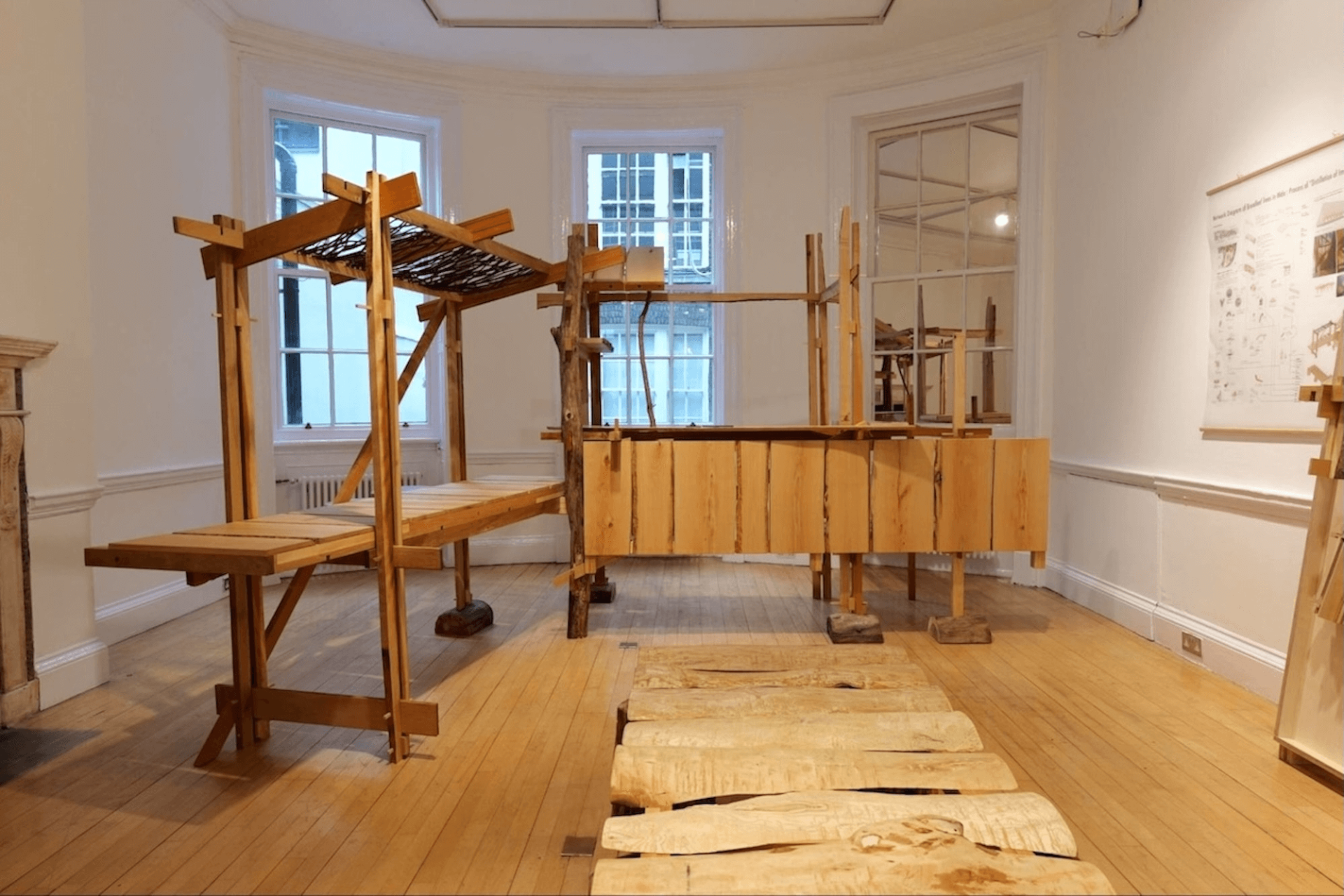 外観がシンプルな森の端は、中に入ると多彩な要素が目に飛び込み、訪れる人はそれぞれ気になる箇所に視線を運びます。それらひとつ一つの多くが、広葉樹活用の課題や、森そのものに紐づいた実験的な試みによって生み出されたものです。