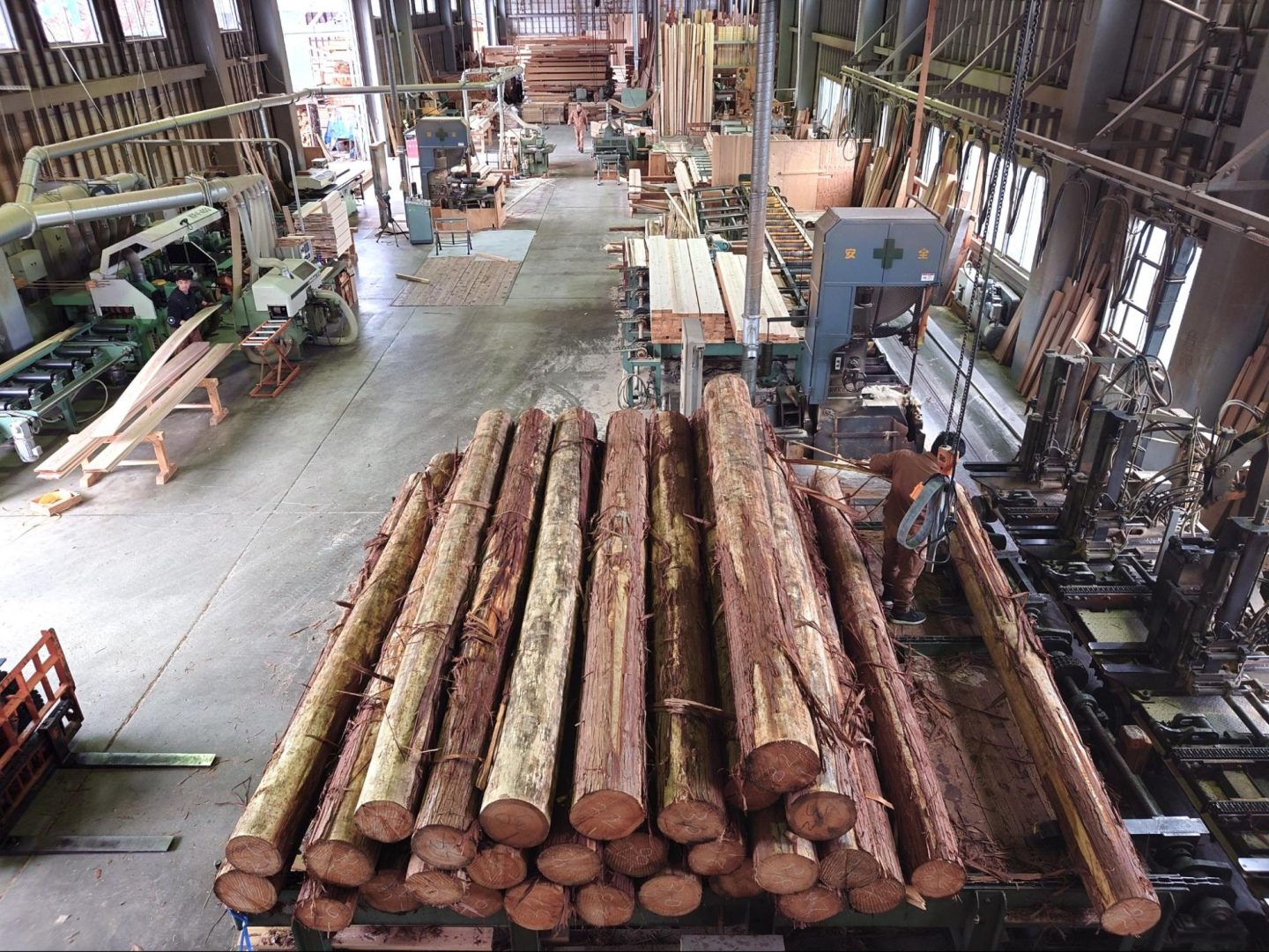 最長12mまで挽ける製材機に中温乾燥室を備え、木組みや伝統構法といった古き良き技術の継承や存続に欠かせない素材を提供すべく注力する。