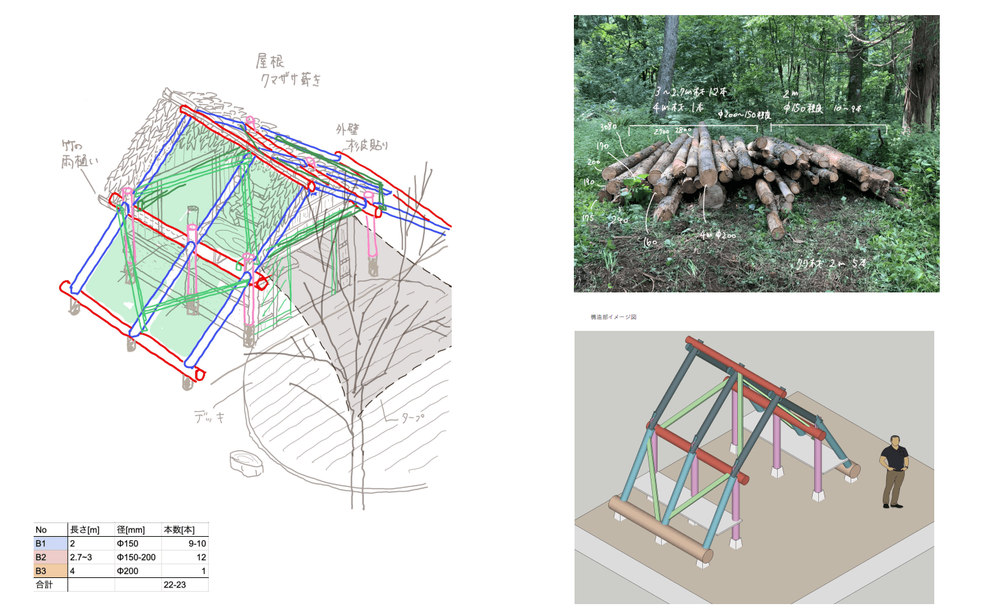大工と茅葺き職人と建築家と山主と一緒に、森の中の素材で森の中に小屋をつくろう