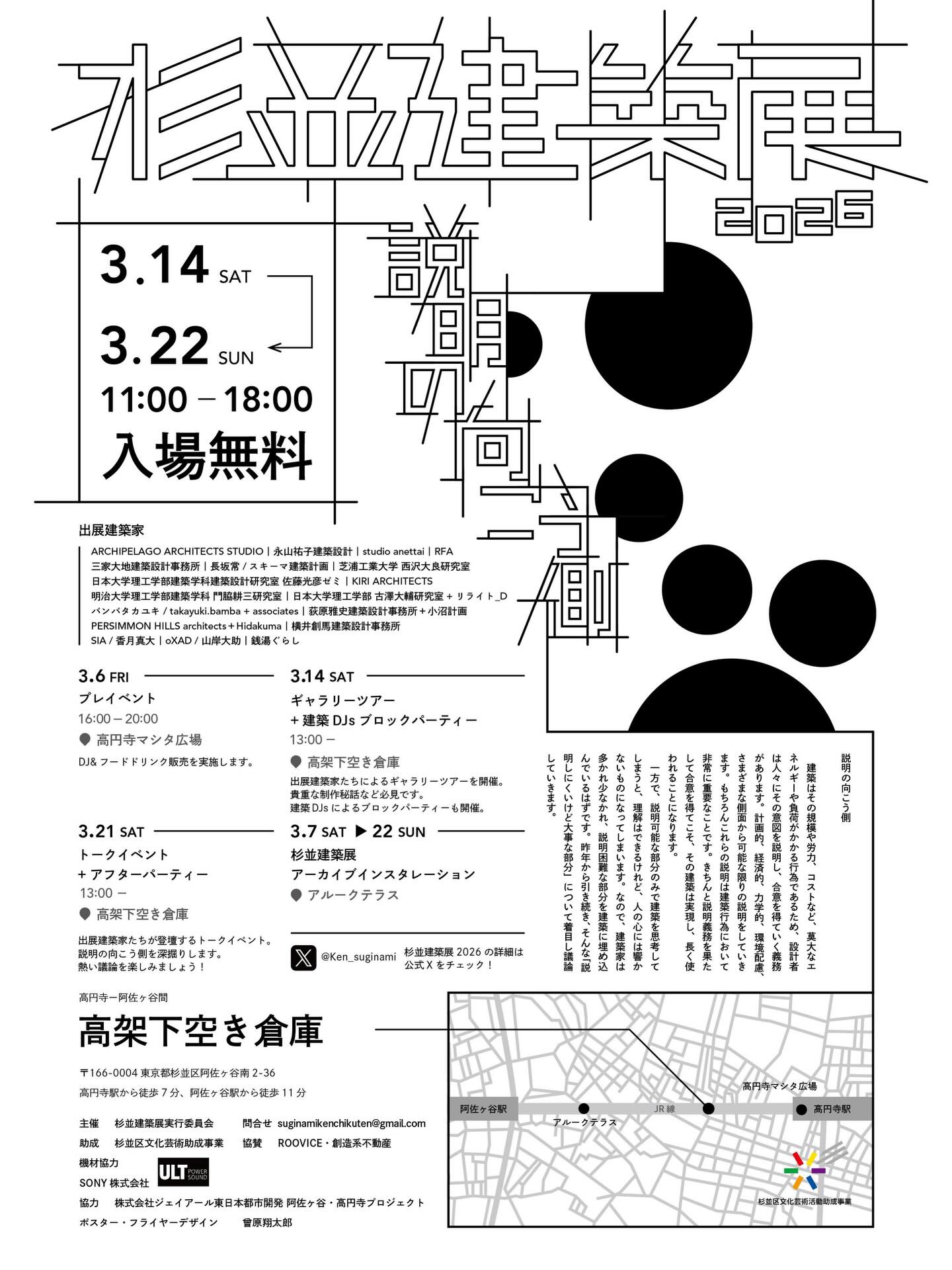 ・イベント詳細:杉並建築展の公式Xやチラシをご覧ください。