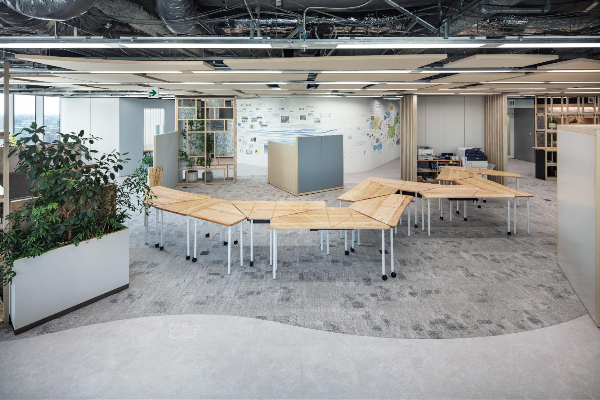 小松ウオール名古屋ショールーム「Show Move Hub Nagoya」の多様な働き方を支えるワークテーブル製作