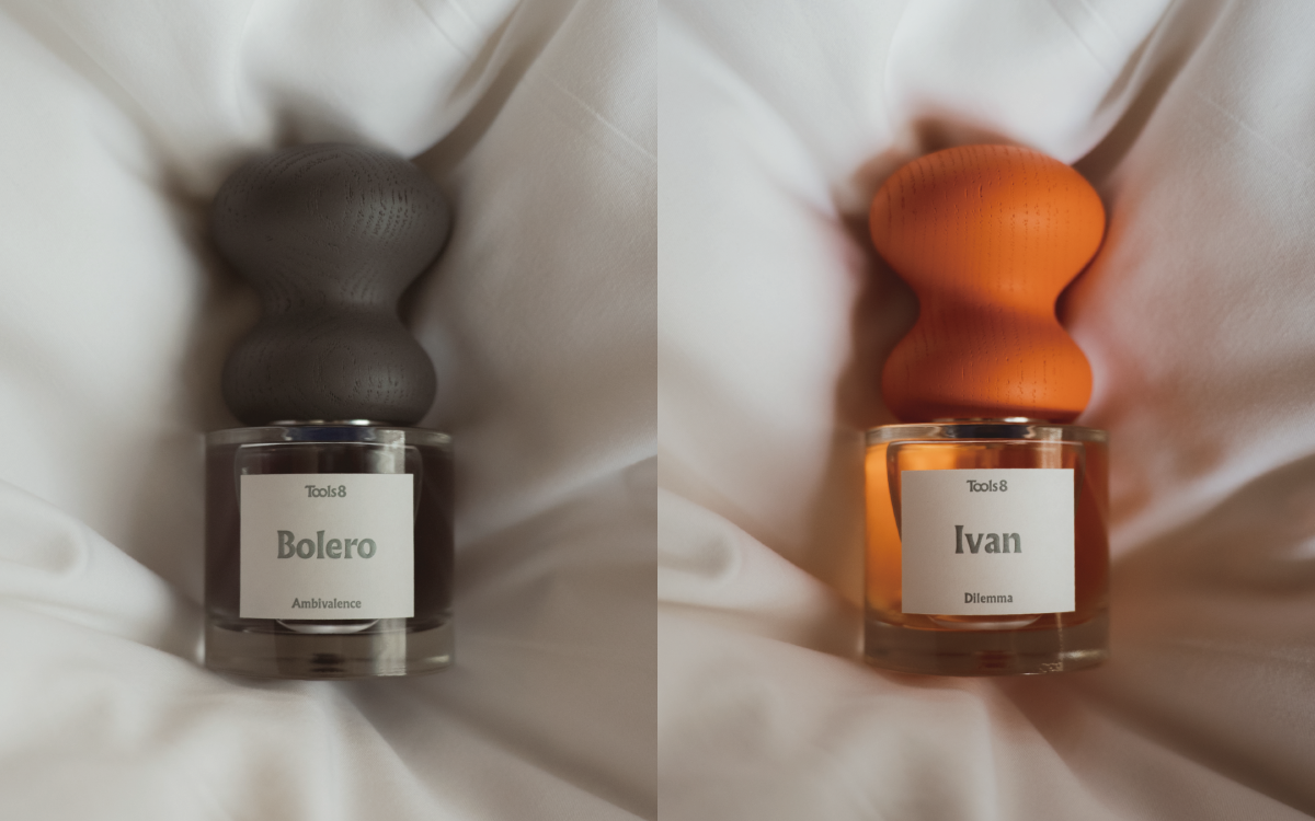 「小さな憂鬱」をテーマに、人の内面に潜む繊細な感情や揺らぎを肯定し、香りを通じて豊かな体験へと昇華させる、株式会社CiiKのフレグランスブランド「Tools8」。ヒダクマは、2025年11月にリリースされた3つの香水「Bolero」「Giselle」「Ivan」の木製ボトルキャップの開発を株式会社CiiKと共同で手がけました。