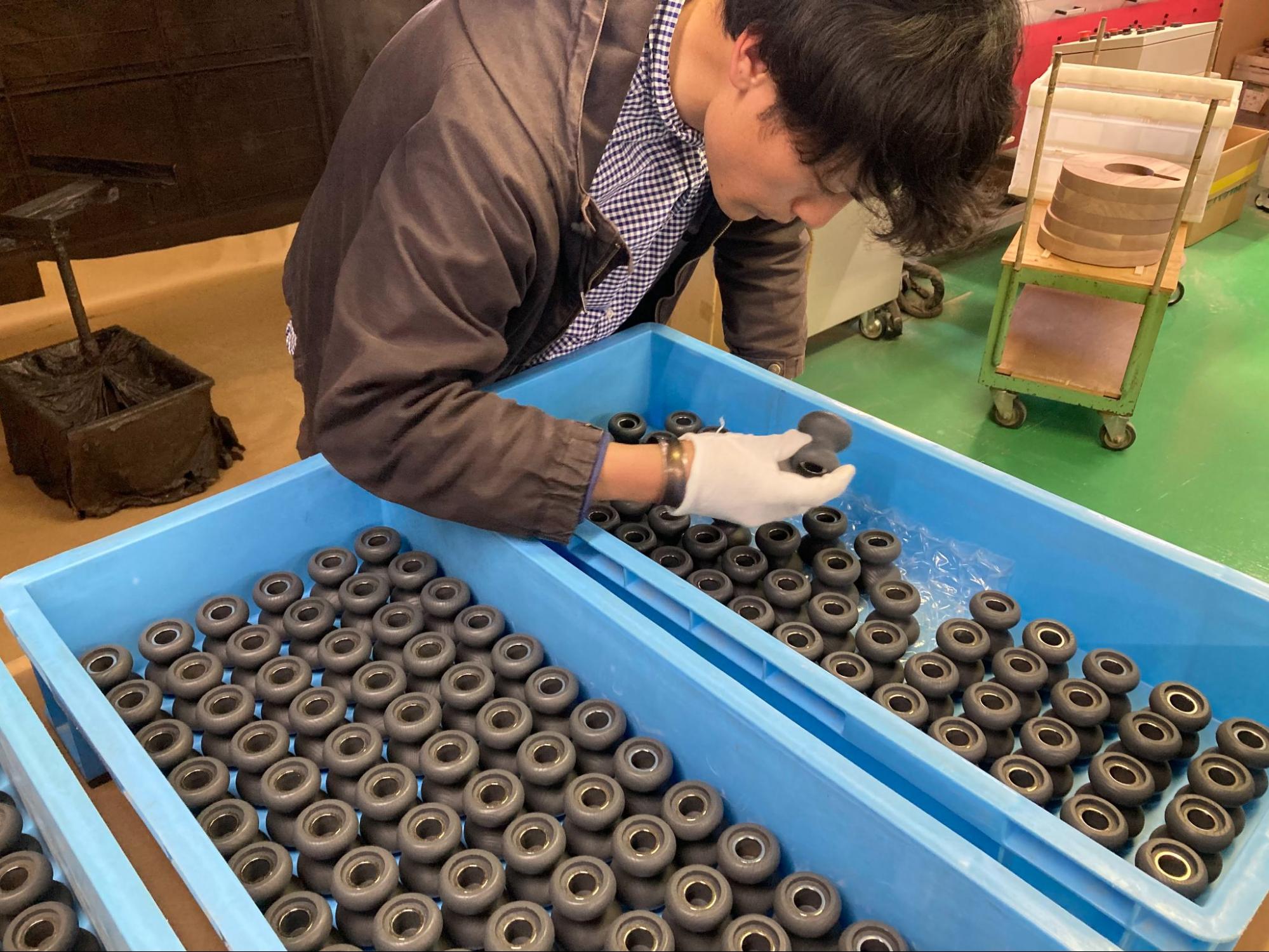 フォルムの成形には、均一な品質と形状を保つため、設計図に基づきデジタル旋盤で生産。最終仕上げは、職人の手により旋盤と紙やすりを使って磨き上げることで、プロトタイプで追求した繊細なフォルムを、製品にも忠実に再現しています。