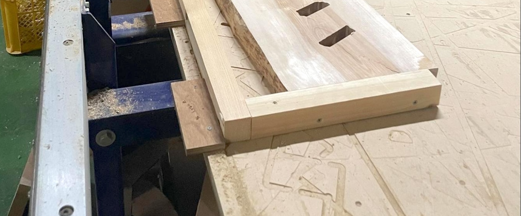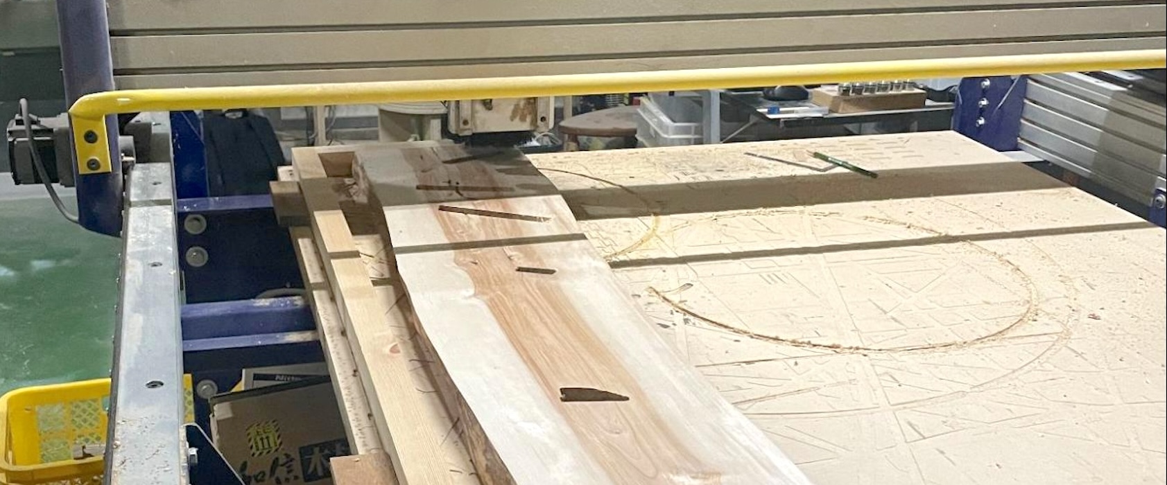 木材側では、石の形に合わせて削り、楔で仮固定しながら接着剤を使わずに積み上げる構成を採用しました。石が真っ直ぐ立つよう、木材に対して正確に直角で加工するための専用ジグを飛騨の職人とともに製作し、材料を反転させても同じ座標を再現できるよう工夫しています。重心や安定性についても、事前にデータ上で検証しました。