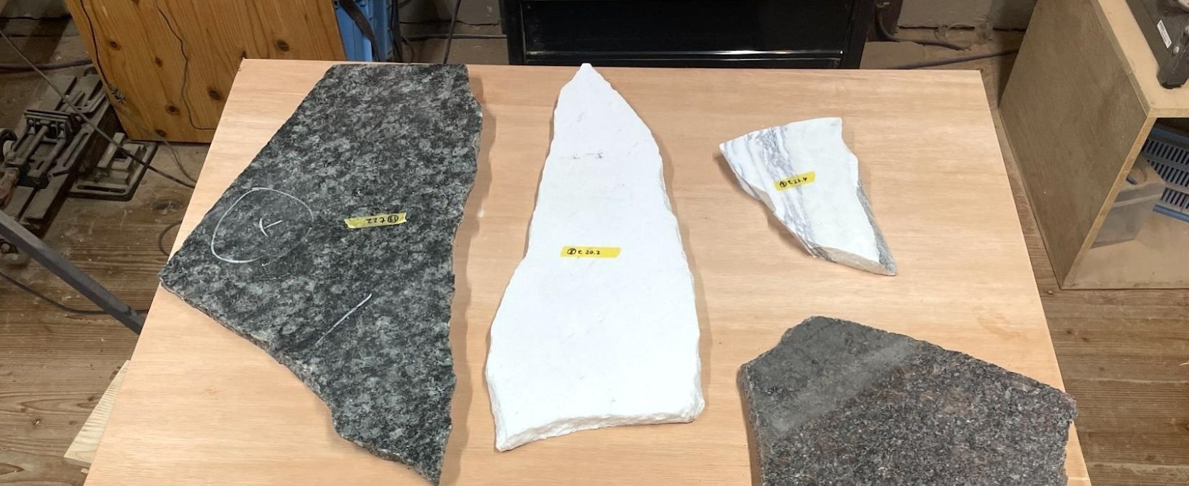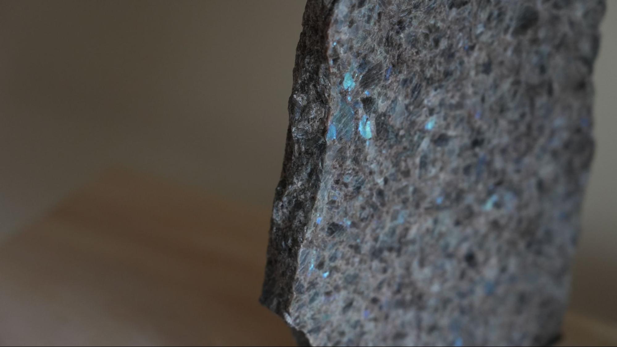 建材として加工された石が割れたとき、その断面に、自然の石がもつ質感が現れているよ