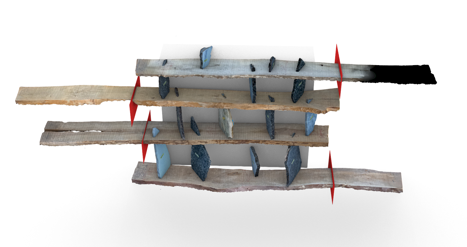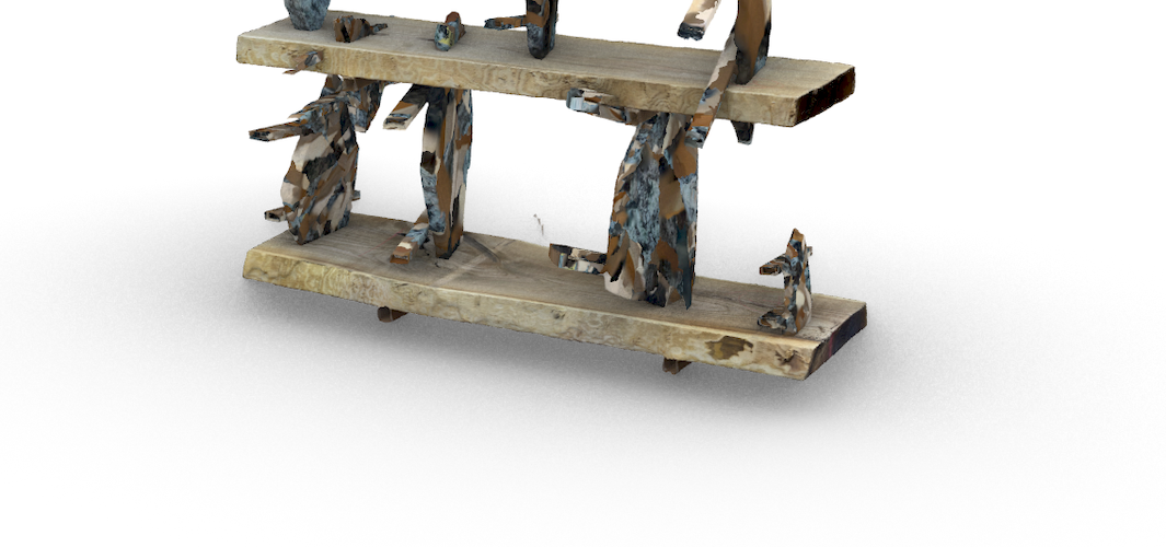 石の形状は3Dスキャンによって取得し、そのデータをもとに木材へCNCルーターで穴加工を行いました。ただし有機的で欠けのある石は、スキャンデータをそのまま用いても正確には収まりません。石ごとにデータを調整しCNCルーターの特性や刃物の厚みを考慮しながら、設計と加工を進めています。